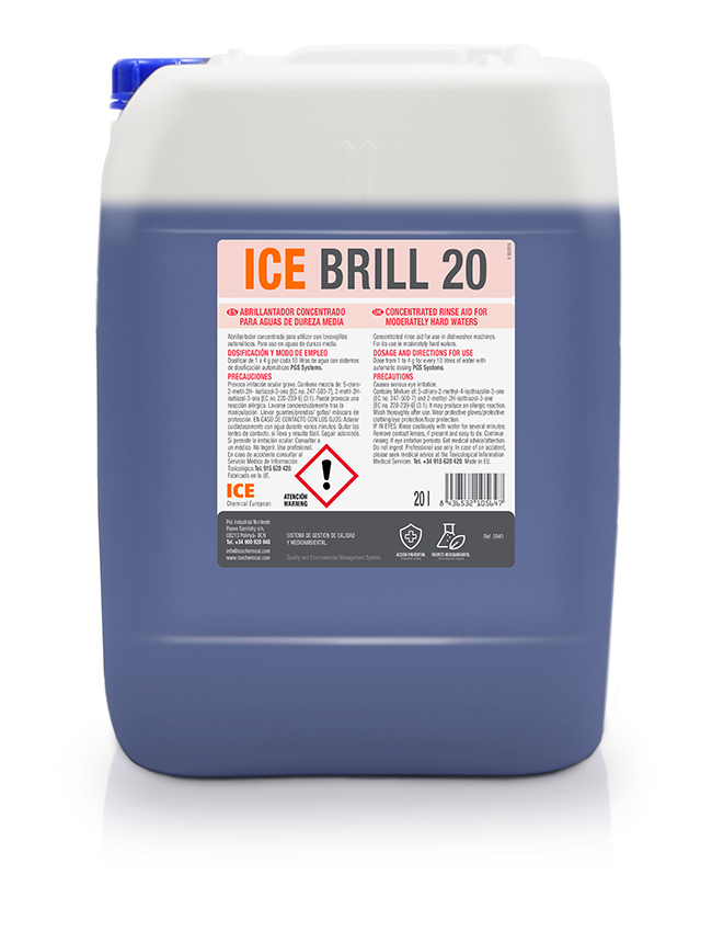 Abrillantador concentrado para máquina lavavajillas. Gracias a su formulación, proporciona un brillo y acabado excelente sobre cristalería, menaje y porcelanas. Renueva el aspecto original de los materiales tratados, incluso en malas condiciones de humectación. Producto diseñado para ser eficaz en aguas de dureza media mediante equipos de dosificación automáticos.