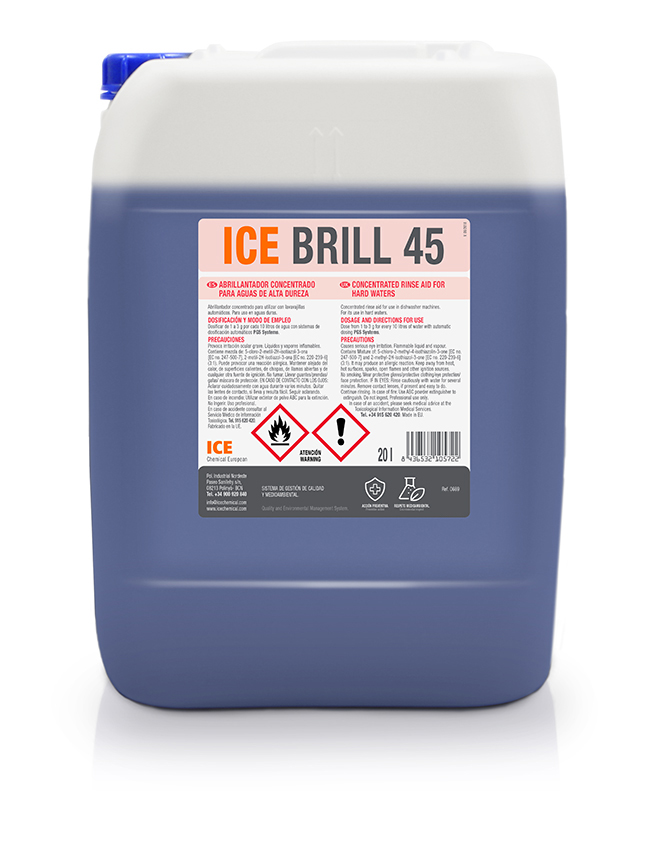 Abrillantador concentrado para máquina lavavajillas. Gracias a su formulación, proporciona un brillo y acabado excelente sobre cristalería, menaje y porcelanas. Renueva el aspecto original de los materiales tratados, incluso en malas condiciones de humectación. Producto diseñado para ser eficaz en aguas duras mediante equipos de dosificación automáticos.