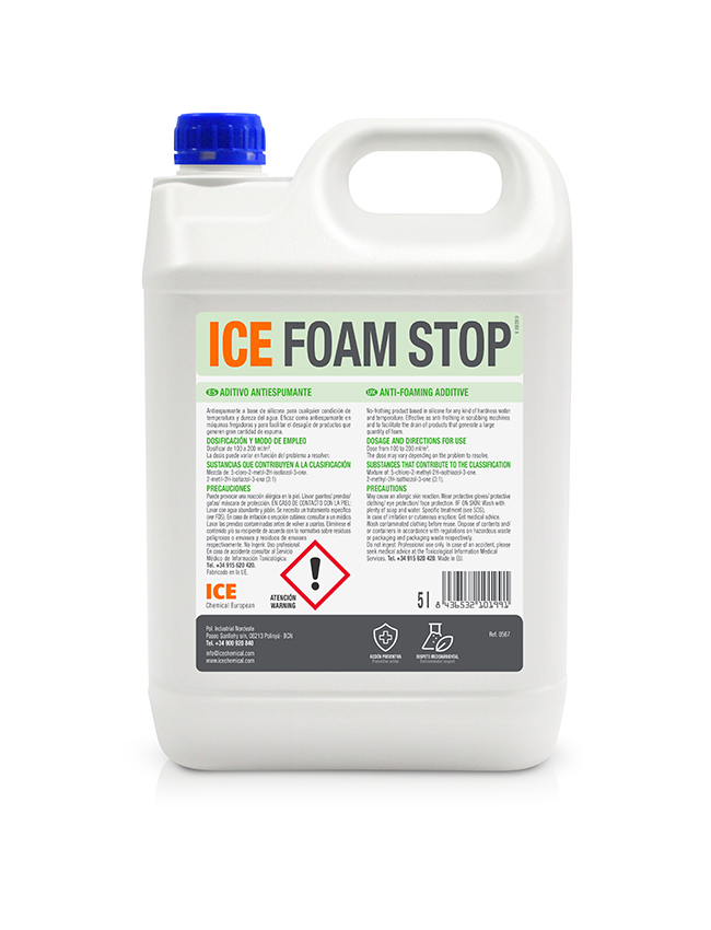 Aditivo antiespumante para máquinas fregadoras. Su formulación, bloquea la generación de espuma y evita los problemas de sobrespumación durante las tareas de limpieza. Es además un producto con una alta concentración, y por tanto, una gran rentabilidad de uso.