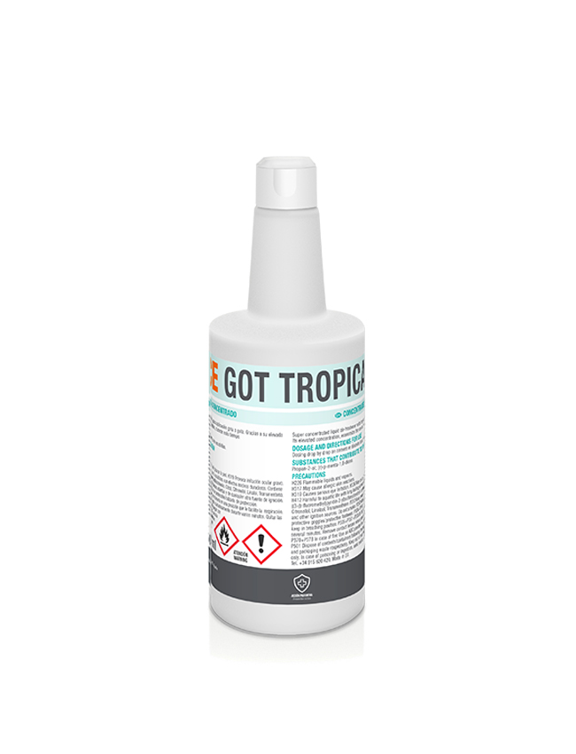 Ambientador líquido superconcentrado con aroma tropical y cítrico para aplicación gota a gota. Gracias a su elevada concentración economiza el uso y mantiene los ambientes despejados, durante más tiempo.